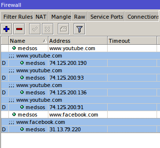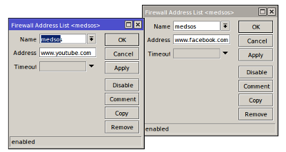 Misal pada contoh diatas kita beri nama dengan 'medsos' dan kita tambahkan kedua webiste tersebut ke address list. Nah, pada Address List yang baru ini ketika kita menambahkan dengan nama domain router akan menambahkan IP Address yang digunakan website tersebut secara dinamis.