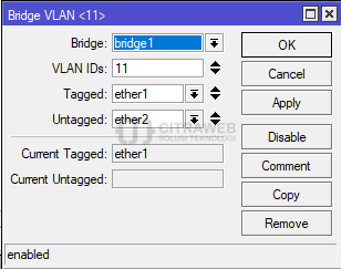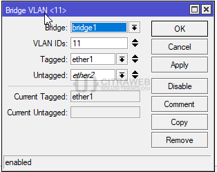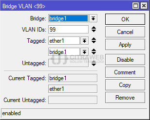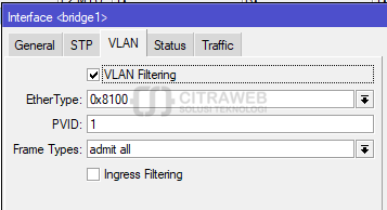 Jangan lupa aktifkan vlan filtering pada bridge yang kita buat tadi.