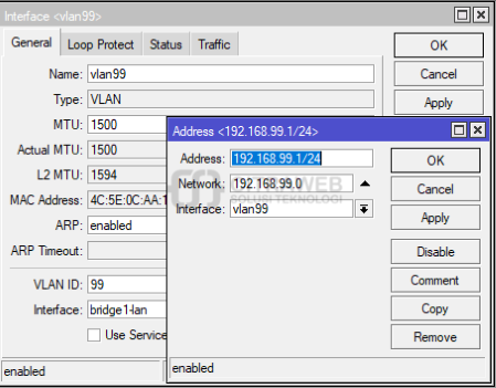 Kemudian kita bisa membuat interface vlan dengan vlan id 99. Setelah itu bisa diberi IP pada interface vlan99 tersebut sesuai dengan alokasi untuk IP vlan management yang sudah temen temen tentukan sebelumnya. Sampai disini vlan management untuk CRS 3XX Series sudah bisa digunakan.