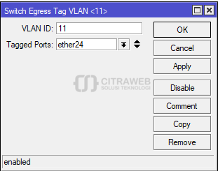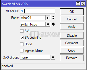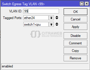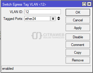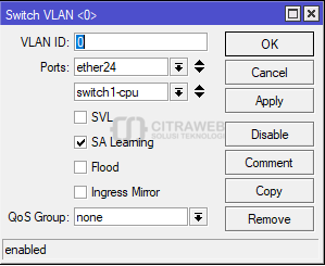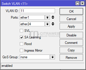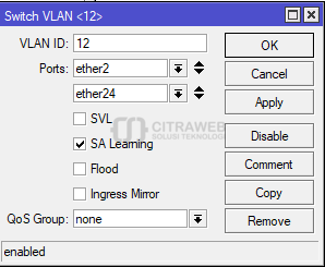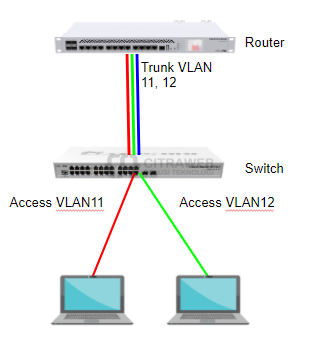 Untuk tutorial penggunaan vlan sudah sering kami bahas pada Youtube Mikrotik Indonesia (Citraweb) dan Artikel Citraweb.