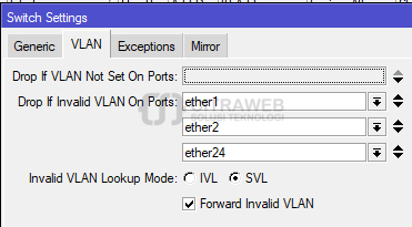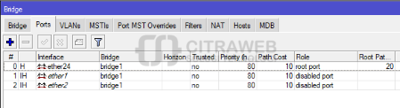 trunk dan access di satu bridge yang sama. Pada contoh ini ether24 adalah trunk,