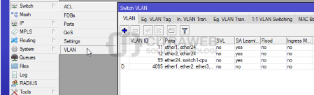 Selanjutnya kita masuk ke menu Switch → VLAN