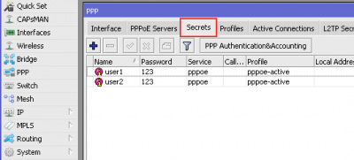 Pool pppoe-active=10.1.1.2-10.1.1.254