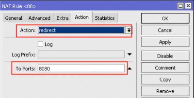 Untuk memaksa client pppoe-expired menggunakan webproxy, kita tambahkan rule NAT baru dengan action Redirect. Buka menu Firewall>NAT lalu tambahkan baru dengan chain dst-nat.
