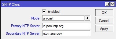 Mikrotik bisa difungsikan sebagai NTP server maupun NTP Client atau kedua nya