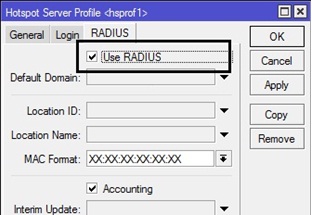 hotspot kita (contoh disini menggunakan profil hsprof1), dalam tab "RADIUS" centang