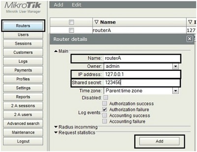 Tambahkan di menu âRoutersâ untuk menginformasikan Radius, router mana saja yang