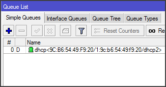 Jika DHCP Client atau wireless berhasil connect, maka limitasi yang sudah dibuat di UserManager akan berlaku. Pada setting limitasi UserManager, kita batasi bandwidth 256kbps. Maka otomatis router akan membuat dynamic queue yang akan melimit client DHCP/Wireless yang berhasil terkoneksi.